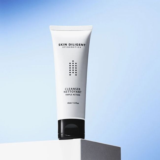 Skin Diligent triple-action cleanser gently cleanses and moisturizes the skin, without disturbing its microbiome.Â