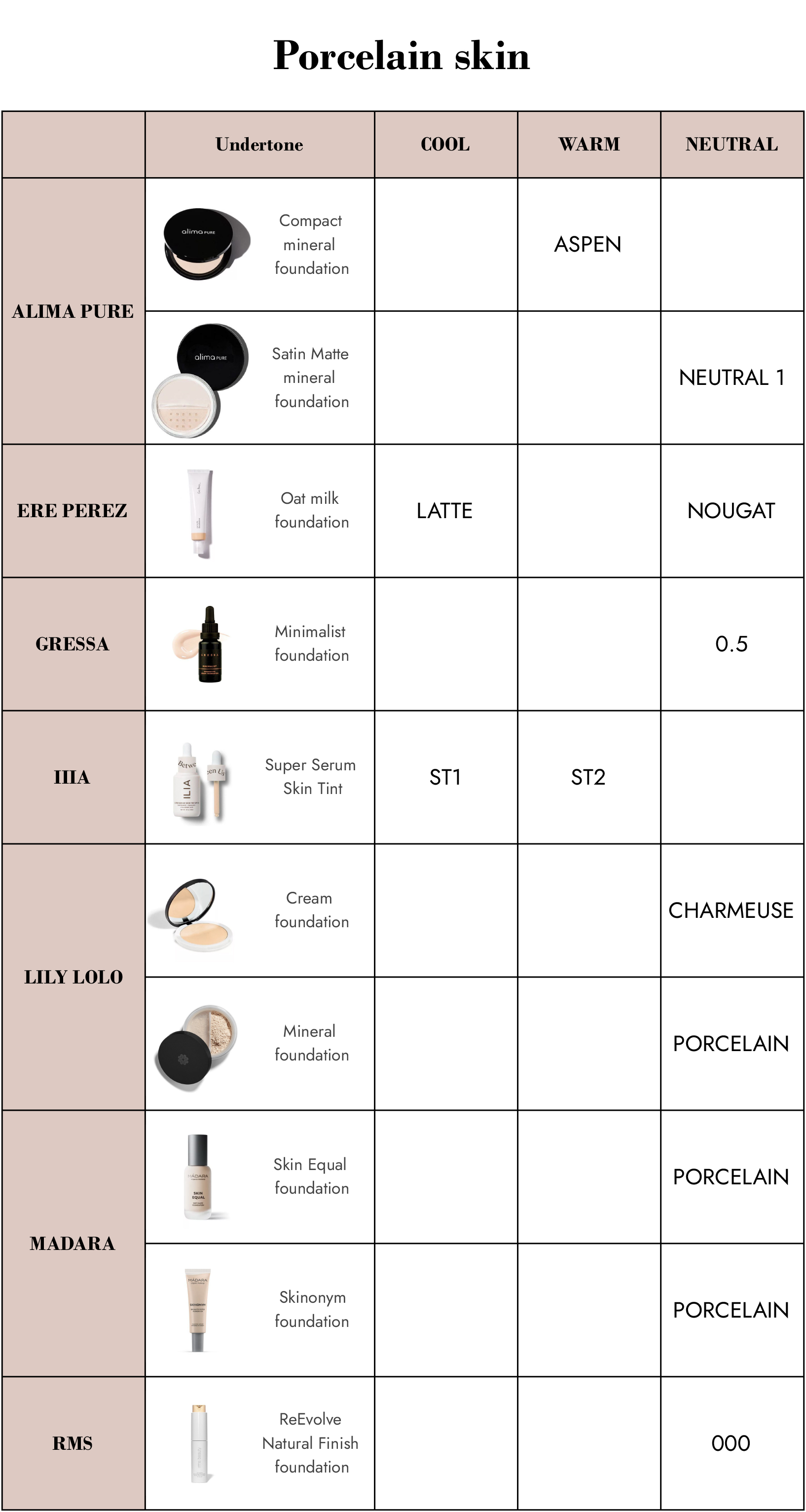 - Shades Comparator Organic Foundation MonCornerB Porcelain Skin