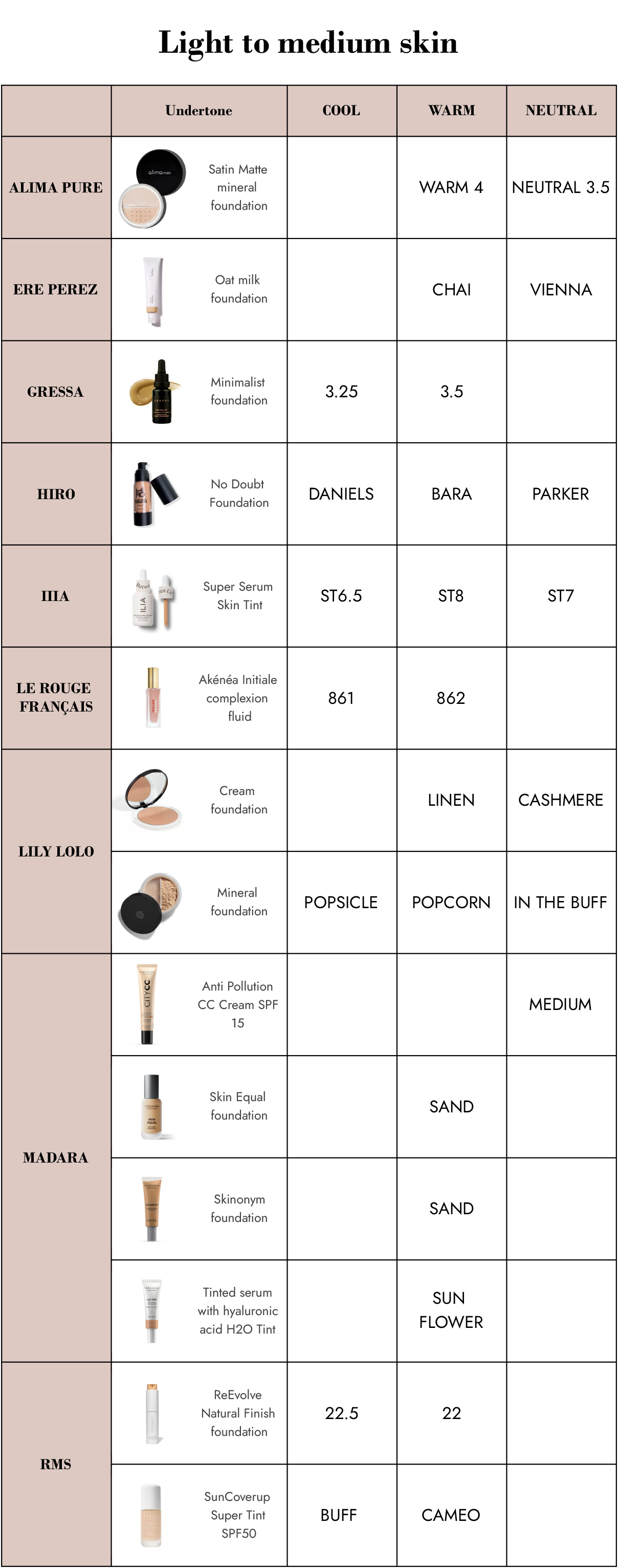 - Shades Comparator Organic Foundation MonCornerB Light To Medium Skin