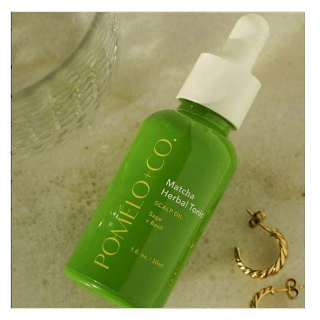 POMÉLO+CO's Matcha Herbal Tonic Scalp Oil strengthens, soothes and purifies the scalp while boosting volume.
