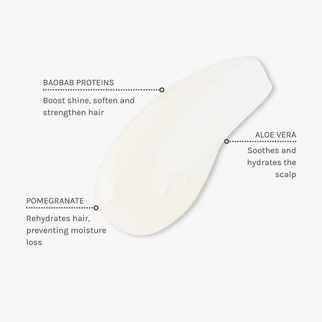 The Baobab proteins boost shine by 42% and softness by 27% (better than Dimethicone!!) . The proteins give intense protection from UV stress and heat, deeply nourish, instantly condition for a softer, smoother feel and reinforce strands for improved strength.