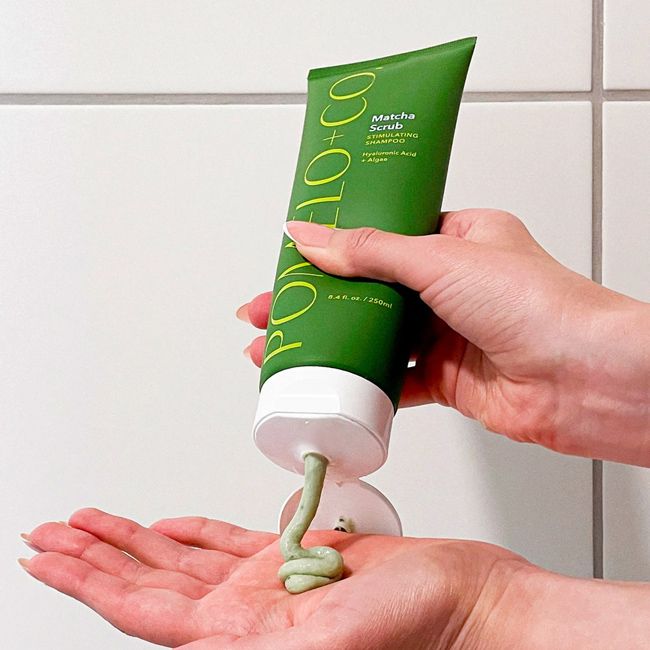 POMÉLO+CO's Matcha Scrub exfoliating shampoo detoxifies and purifies the scalp without ever irritating it.