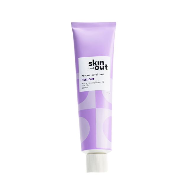 The Peel Out Skin & Out exfoliating mask reduces the appearance of pores, blackheads, and blemishes.