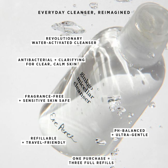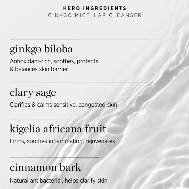 The micellar cleanser with ginkgo gently removes makeup and cleanses the face and eyes.