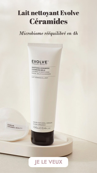 La douce gelée nettoyante EVOLVE, enrichie en baobab et vanille, qui laisse un film hydratant sur la peau.