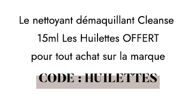L'huile démaquillante Cleanse et le sérum anti-imperfections Day sont des soins essentiels pour sublimer sa peau. En effet, l’huile démaquillante bio Cleanse des Huilettes a été spécialement développée pour nettoyer en profondeur le visage et les yeux, sans assécher la peau. Sa synergie d’huiles végétales et essentielles élimine efficacement le maquillage et les impuretés, tout en restaurant souplesse et douceur. On adore son parfum aromatique frais et relaxant qui offre une expérience sensorielle unique. Fournie avec son coton démaquillant bio, elle offre un rituel de démaquillage complet et respectueux de l'environnement. En complément, le sérum anti-imperfections Day est le compagnon idéal pour les personne à la recherche d'une routine simple et efficace. Cette huile visage bio, à la fois anti-âge et vegan, agit comme un sérum, révélant l'éclat naturel de la peau jour après jour. Sa formule anti-oxydante protège l'épiderme des radicaux libres, tandis qu'elle hydrate et nourrit tous les types de peau. Offrez à votre peau le duo parfait pour une peau rayonnante au quotidien !