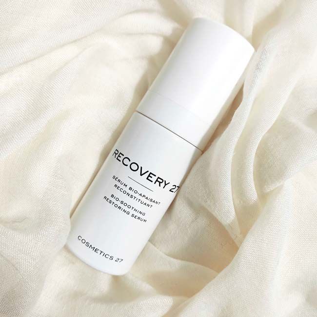 Le sérum bio-apaisant reconstituant Recovery 27 COSMETICS 27 calme instantanément, soulage et restaure le confort de la peau.