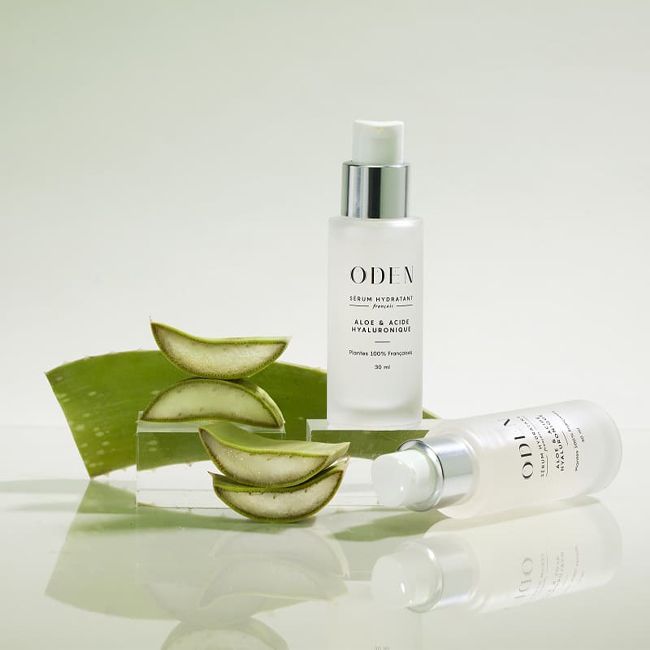 Le sérum hydratant Oden restaure et retient l’hydratation de la peau grâce à sa formule combinant une pulpe d’aloe vera française d’exception, cultivée en Occitanie en agriculture biologique, et des acides hyaluroniques de deux poids moléculaires différents.