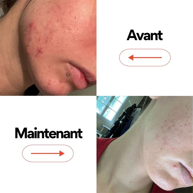 Résultat : L'apparence de la peau est améliorée et l'acné est soulagé.