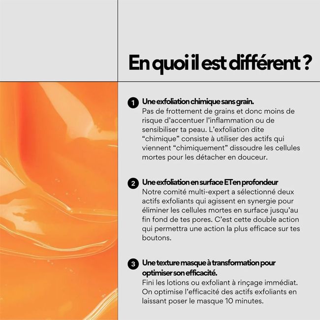Pour qui : Les peaux sujettes aux imperfections qui veulent un exfoliant réellement adapté.