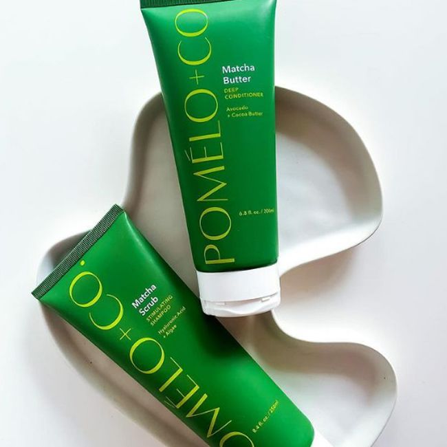 Le shampoing exfoliant Matcha Scrub POMÉLO+CO détoxifie et assainit le cuir chevelu sans jamais l'irriter.