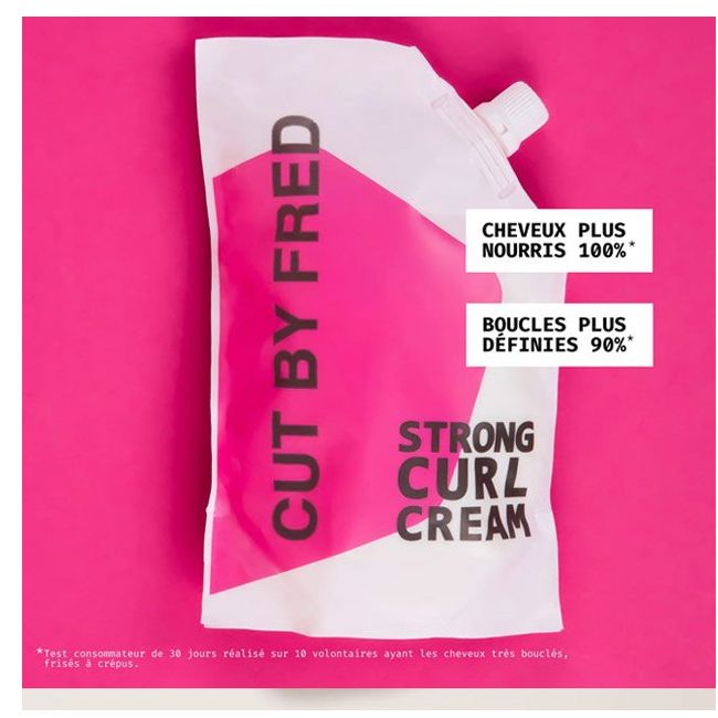 La crème pour cheveux crépus Strong Curl CUT BY FRED nourrit et déinfit les boucles.