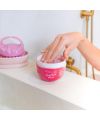 On devient addict au Masque Pink Power Mask pour sa texture pommade qui glisse sur les cheveux, son parfum fruité et floral qu’il dégage et sa couleur rose bonbon !